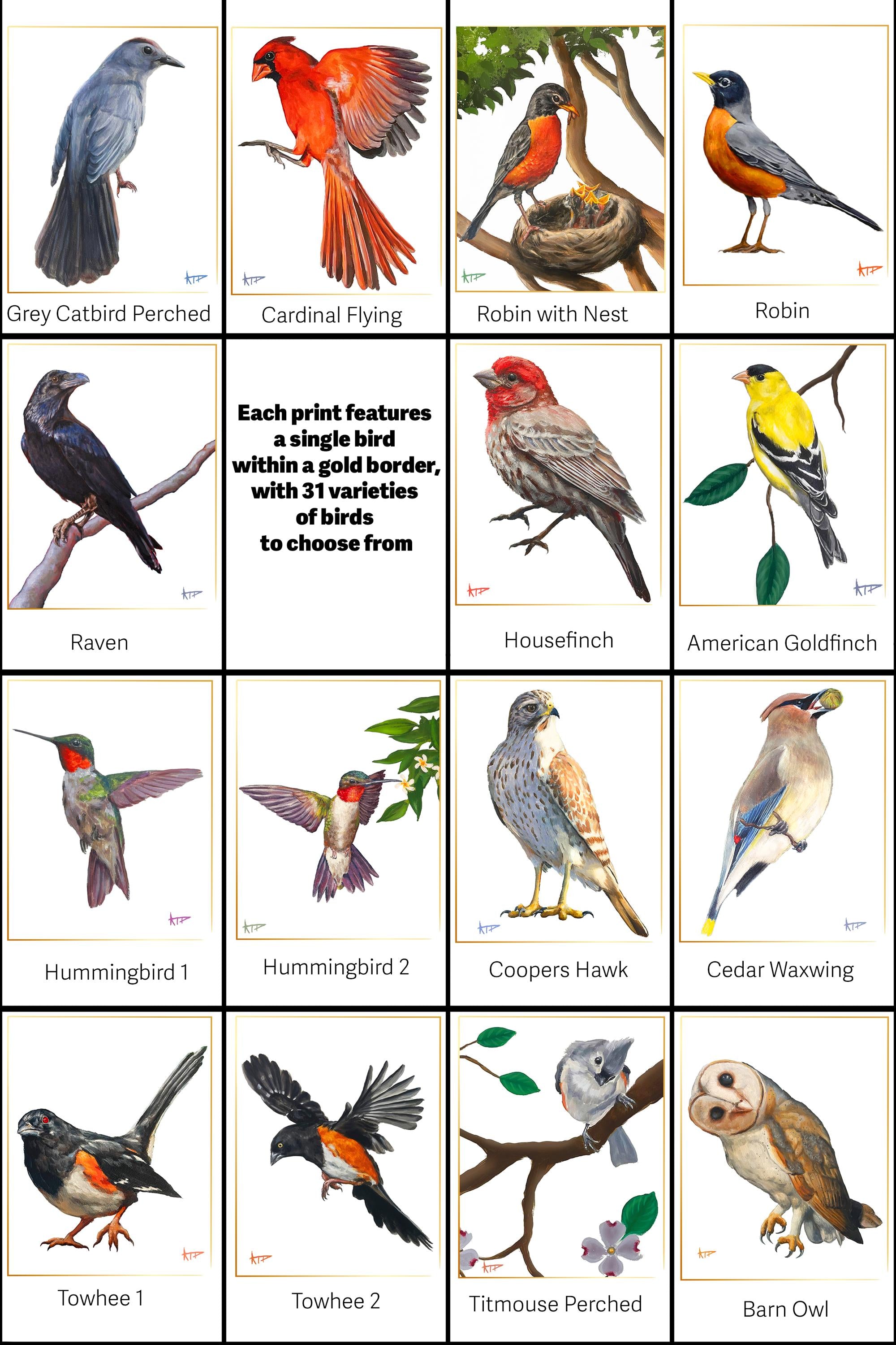Bird Prints (Gold Border)